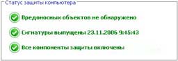 проникновения вредоносных программ. Включены все компоненты защиты.