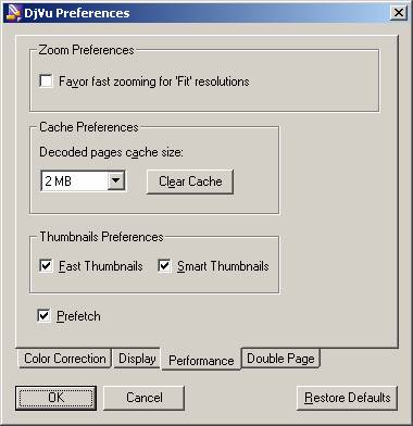 The DjVu Browser Plug-in creates a cache to store decoded pages in memory. This allows very rapid access to downloaded pages but at the cost of additional memory. This preference setting allows you to set the size of that cache. Note that this is different than the file download cache used by the browser.