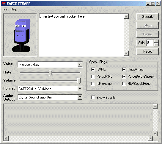 | Show Events | Displays all TTSApp SAPI events. |