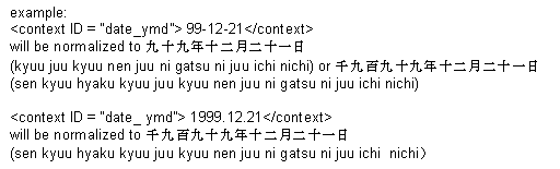 The text specifying the date is normalized so that the first group of numbers is the year, the second group is the month and the third group is the day. In the case where the year is a two-digit number, the engine reads it as a two-digit number. If the year is represented as a four-digit number, it is be represented as a four-digit year.