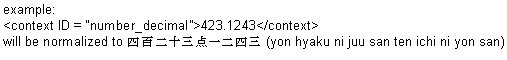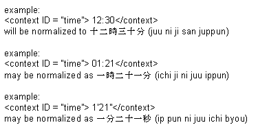 The exact implementation of some of these values is dependent on the engine in SAPI 5. In order to force a certain normalization, application developers can choose to normalize the text, or use another SAPI tag or engine-specific ID. Each context tag can contain more than one string.